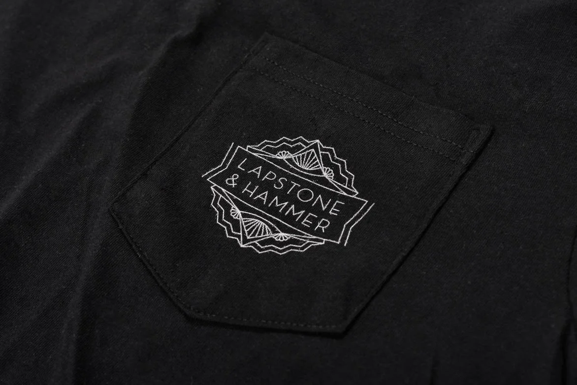 Lapstone Fundamentals, our new line of wardrobe staples, is apparel and accessories designed for everyday life. The Lapstone Logo Pocket Tee is a 100% cotton, black crewneck tee that features our crest logo printed on the pocket over the left breast, and a branding text hit on the back neck.