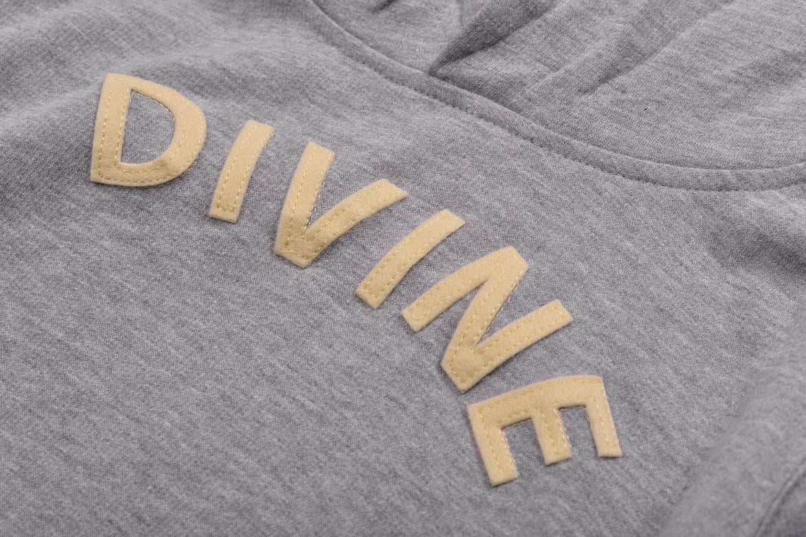Lapstone & Hammer has teamed up with designer Najeeb Sheikh once again for another edition of our highly sought after Divine collection. The second drop of the Fall '19 Divine Collection features kids sizes of the iconic Divine Hoodie for the very first time.  The super soft, 10 ounce, cotton/poly blend hooded sweatshirt features a drawstring hood, side slit pockets, cream colored felt appliquè letters stitched across the chest and a silkscreened logo on the back neck.
